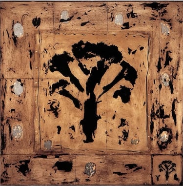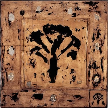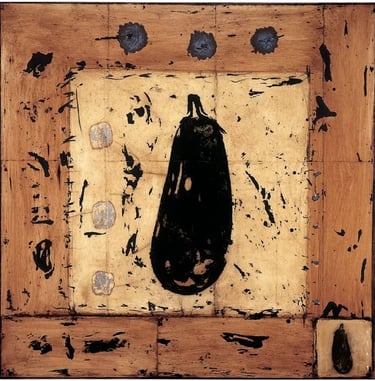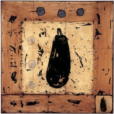 Dans « Végétal », les formes s’impriment comme des gravures, portées par des teintes de terre et d’orange.